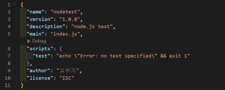 - 이런 필드들을 설정하는 것이 귀찮다면, npm init -y 명령어를 실행하면 각종 설정값을 입력하지 않아도 된다.